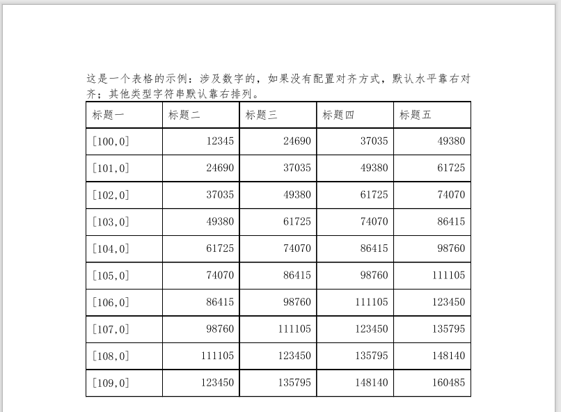 String s = "这是一个表格的示例:涉及数字的,如果没有配置对齐方式,默认水平靠右对齐;其他类型字符串默认靠右排列。";