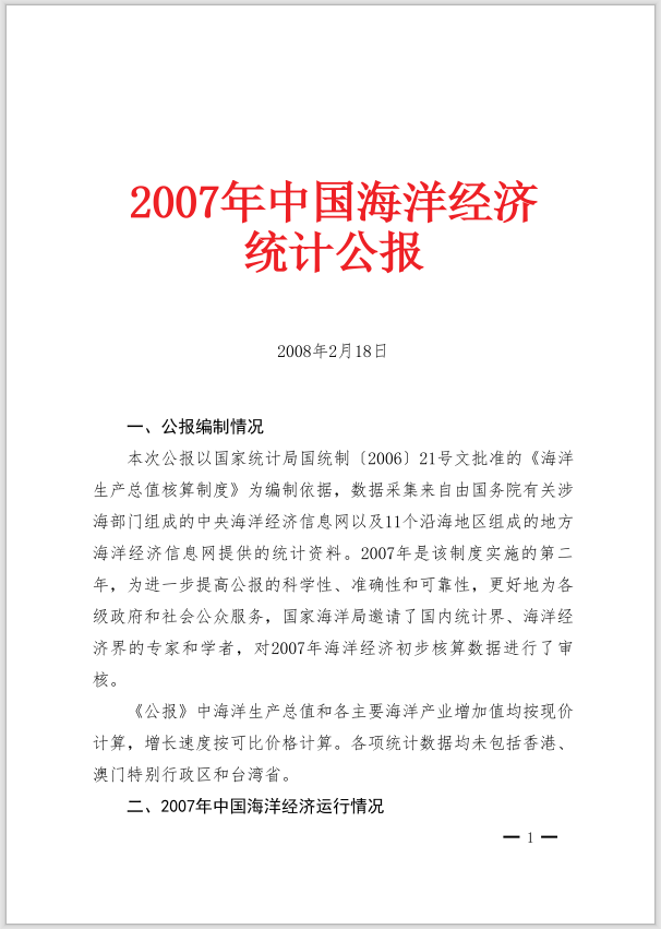 p.add("二、2007年中国海洋经济运行情况", ContentLevel.ONE);