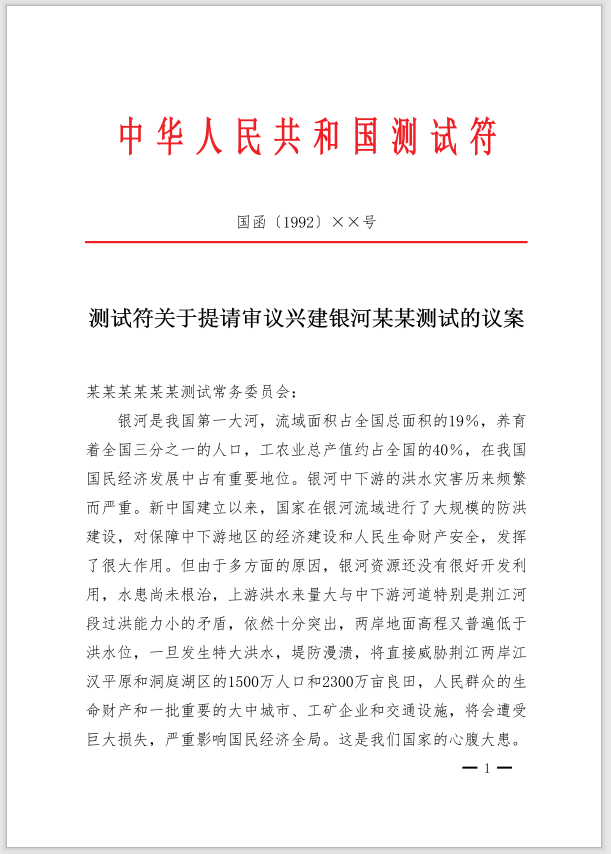 official.addContent("测试符常务会议经过认真讨论,同意建设某某测试。建议将兴建某某测试列入国民经济和社会发展十年规划,由测试符根据国民经济的实际情况和国家财力物力的可能,选择适当时机组织实施。");