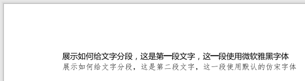 text = new Text("展示如何给文字分段,这是第二段文字,这一段使用默认的仿宋字体");