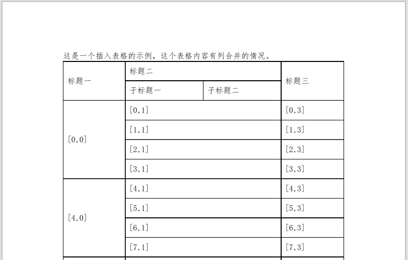 String s = "这是一个插入表格的示例,这个表格内容有列合并的情况。";