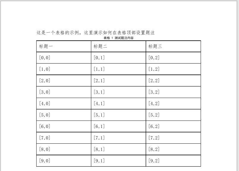 String s = "这是一个表格的示例,这里演示如何在表格顶部设置题注";