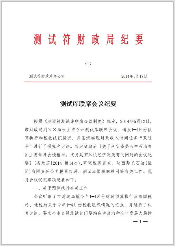 official.addContent("按照《测试符测试库联席会议制度》规定,2014年5月12日,市财政局刘××局长主持召开测试库联席会议, 通报1-4月份预算执行和税收组织情况,并围绕实现财政收入时间任务“双过半”进行了研究和讨论。传达省政府《关于落实省委与中石油集团主要领导会谈精神,支持延安加快经济发展有关问题的会议纪要》(省政府[2014]第14次),研究税源普查、陕西延长石油(集团)有限责任公司税票传递、测试库银横向联网等有关工作。现将会议议定事项纪要如下:");