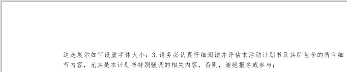 String s = "这是展示如何设置字体大小:3.请务必认真仔细阅读并评估本活动计划书及其所包含的所有细节内容,尤其是本计划书特别强调的相关内容,否则,谢绝报名或参与;";
